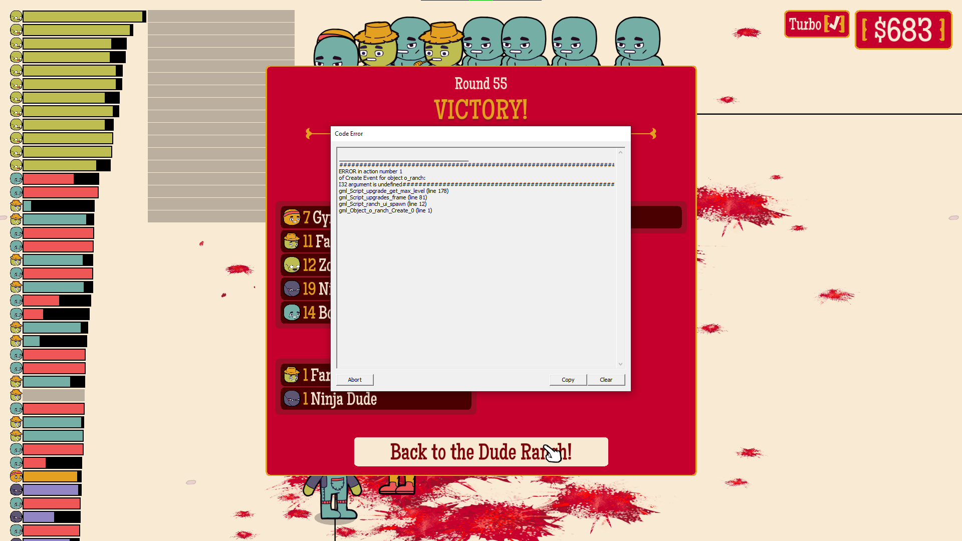 Eventually just got into a war of attrition loss that ended on Wave 83. At some point it basically comes down to shop RNG of what you get to replace your lost dudes. Since the only thing that really matters is DPS. Once you start losing your Ninjas and only get like Zombie shops. It's already over, but it'll take like 10 waves of slowly falling behind on DPS before you actually lose.